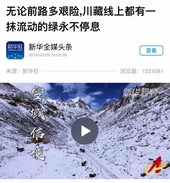 新华社:无论前路多艰险,川藏线上都有一抹流动的绿永不停息
